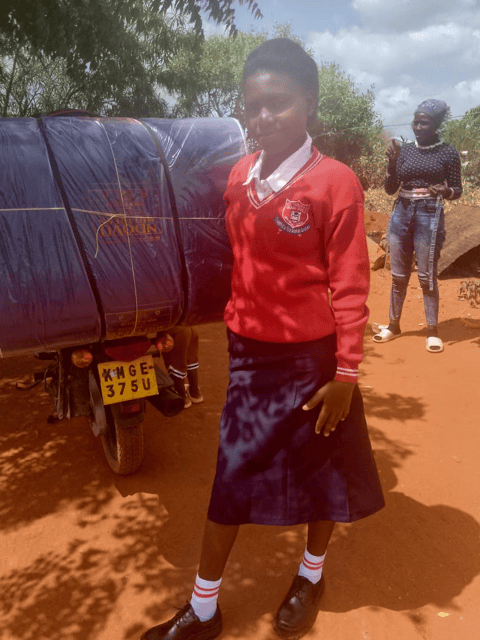 She is from Ukasi and was chased from school for not paying fees and had been studying under nearby trees. The group sponsored her enrollment in St. Teresa Ukasi girls... to give her another chance in her pursuit of education